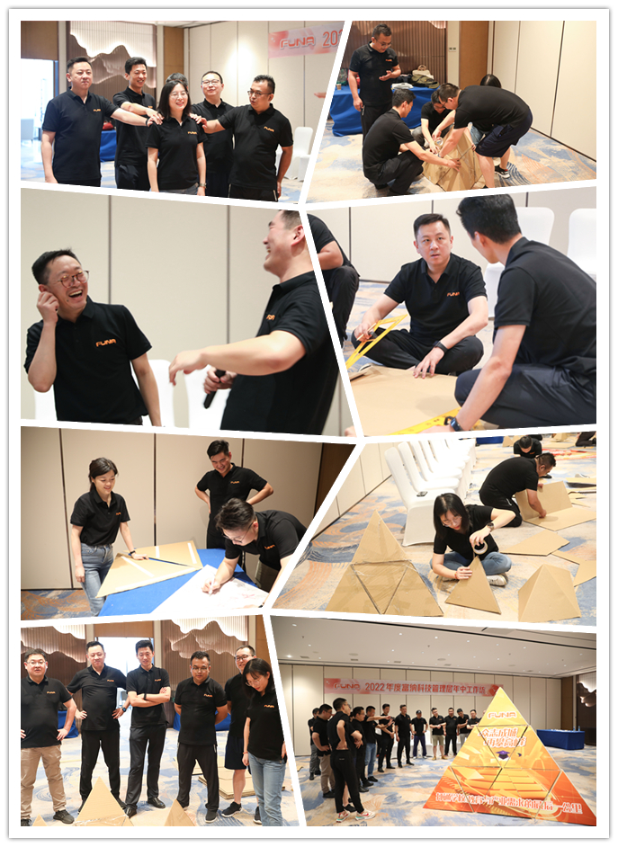 下午的拓展活動(dòng)中,管理層成員通過(guò)“團(tuán)隊(duì)金字塔”游戲展現(xiàn)了富納人的創(chuàng)新性、凝聚力和團(tuán)隊(duì)執(zhí)行力,有效提升了團(tuán)隊(duì)協(xié)作力和向心力,營(yíng)造了團(tuán)結(jié)友愛(ài)、銳意進(jìn)取的和諧氛圍。