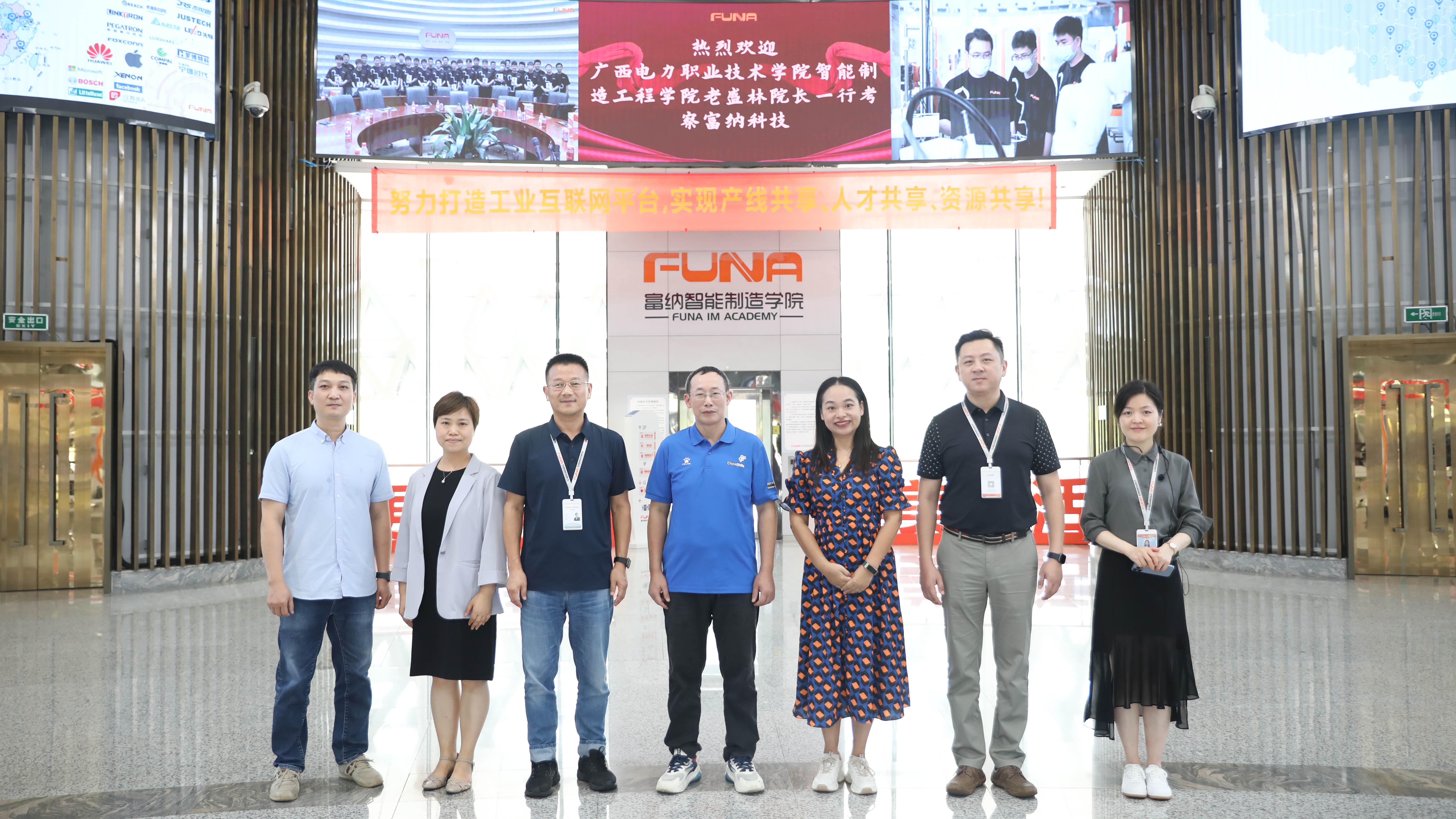 據(jù)悉,今年8月8日,廣西電力職業(yè)技術(shù)學(xué)院智能制造工程學(xué)院院長老盛林、副院長玉河、專業(yè)帶頭人黃志彬一行考察富納科技,探討校企合作事宜。