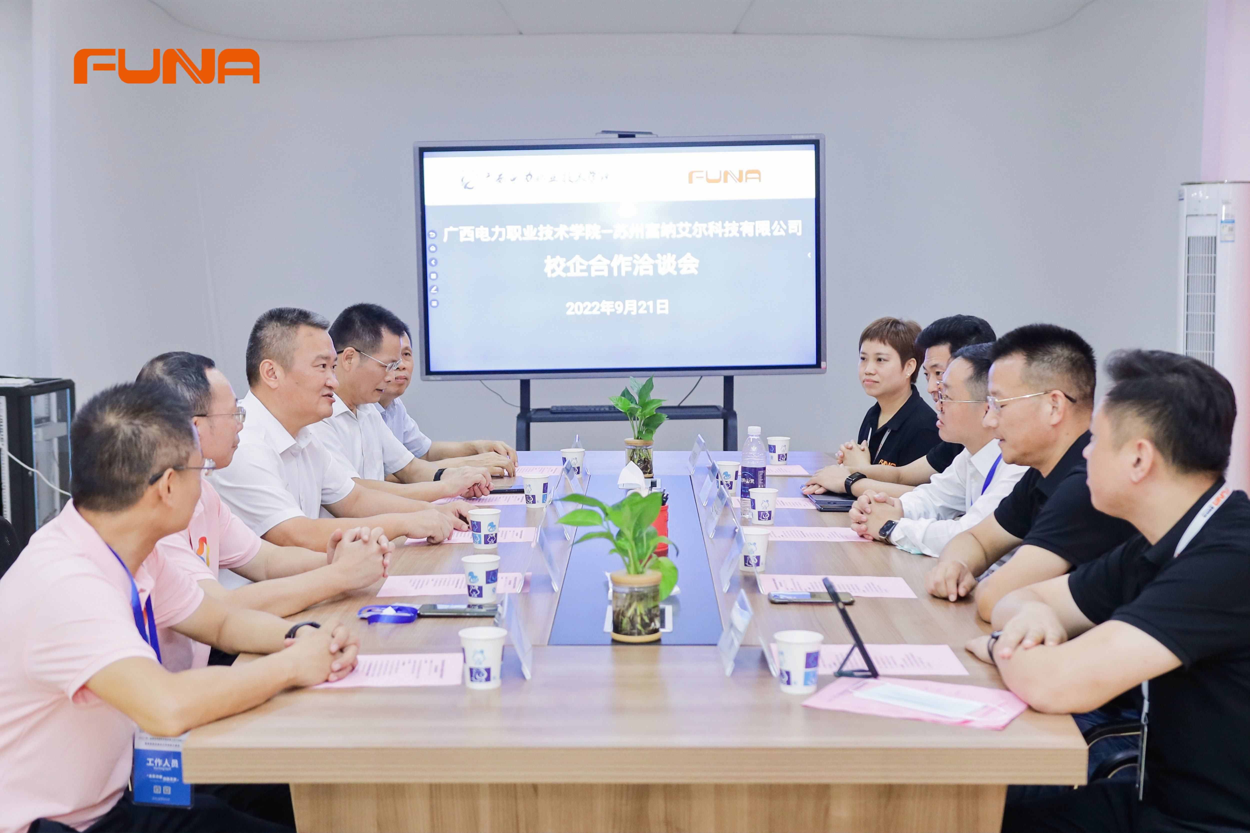 廣西電力職業(yè)技術(shù)學(xué)院校長趙峰、副校長湛年遠(yuǎn)、智能制造工程學(xué)院院長老盛林、副院長隆丹寧、副院長玉河,蘇州工業(yè)職業(yè)技術(shù)學(xué)院學(xué)術(shù)委員會(huì)主席單強(qiáng),蘇州富納艾爾科技有限公司董事長吳加富、總裁辦總監(jiān)劉振聲、校企合作部總監(jiān)李熙、校企合作部華南區(qū)域經(jīng)理劉曉燕出席本次洽談會(huì)。
