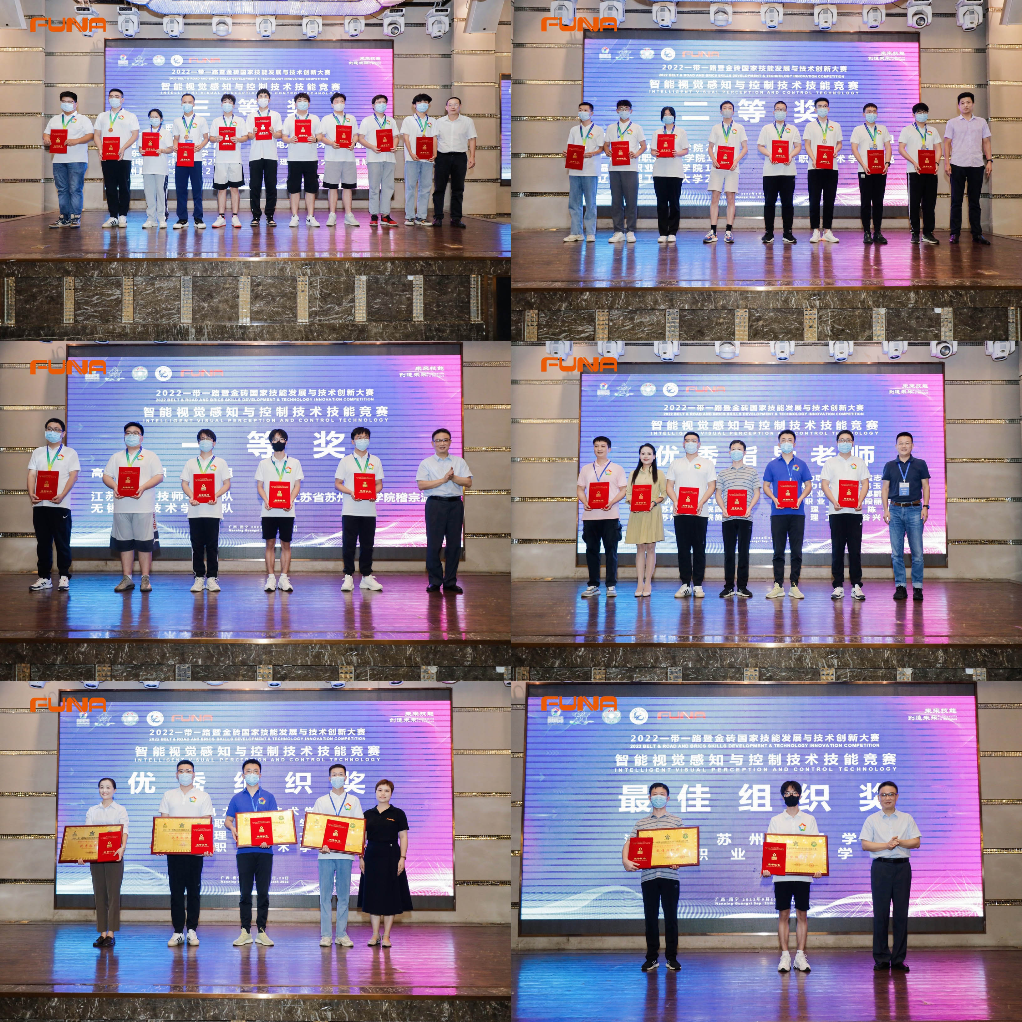 其中,江蘇省蘇州技師學(xué)院1隊(duì)、無錫職業(yè)技術(shù)學(xué)院2隊(duì)的同學(xué)獲得高職組一等獎,江蘇省蘇州技師學(xué)院稽宗源獲得職工組一等獎。廣西電力職業(yè)技術(shù)學(xué)院與蘇州富納艾爾科技有限公司獲得了突出貢獻(xiàn)獎。到場領(lǐng)導(dǎo)和嘉賓分別為獲獎單位和個人頒發(fā)了獎牌、獎?wù)潞妥C書。