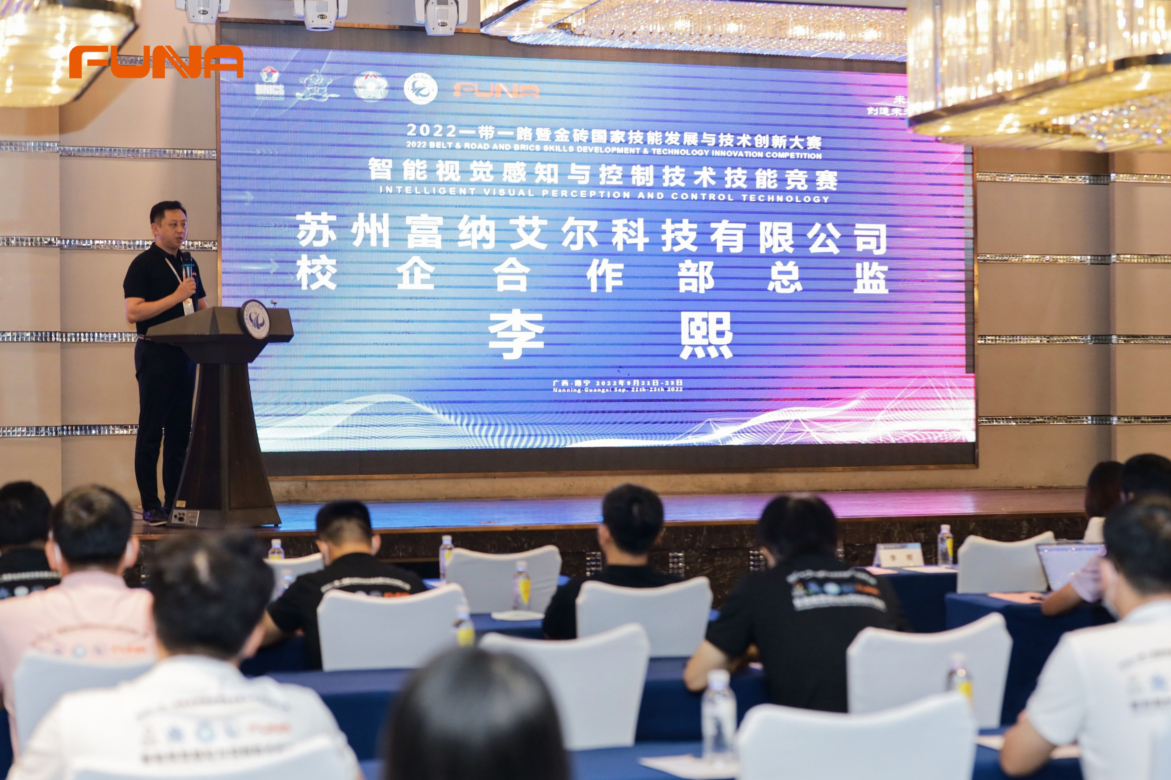 蘇州富納艾爾科技有限公司校企合作部總監(jiān)李熙致閉幕詞表示:【智能視覺感知與控制技術(shù)】賽項(xiàng),是首次在金磚大賽上亮相,雖碰到諸多外部不利因素影響,但在各方的共同努力下,技能大賽取得了預(yù)期效果。參賽選手們賽出了風(fēng)格、賽出了水平。各參賽選手、帶隊(duì)老師通過相互學(xué)習(xí)交流、切磋技藝,有效地提高了自身的技能水平以及對智能視覺感知與控制技術(shù)應(yīng)用有了更深入的了解。