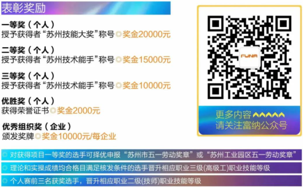競賽成績將根據(jù)綜合成績(預(yù)賽成績占20%,決賽成績占80%)由高到低排名,最終決出一、二、三等獎(jiǎng)及優(yōu)勝獎(jiǎng)。據(jù)悉,大賽組委會為鼓勵(lì)更多高技術(shù)人才參賽,保證大賽的高水平、高質(zhì)量,本次大賽設(shè)立了多個(gè)獎(jiǎng)項(xiàng),同時(shí)為在大賽中表現(xiàn)優(yōu)異的選手發(fā)放豐厚的薪酬補(bǔ)貼。本屆預(yù)賽和決賽雙合格者將獲得江蘇省人社廳與蘇州富納艾爾科技有限公司認(rèn)定的職業(yè)技能等級三級(高級)證書。