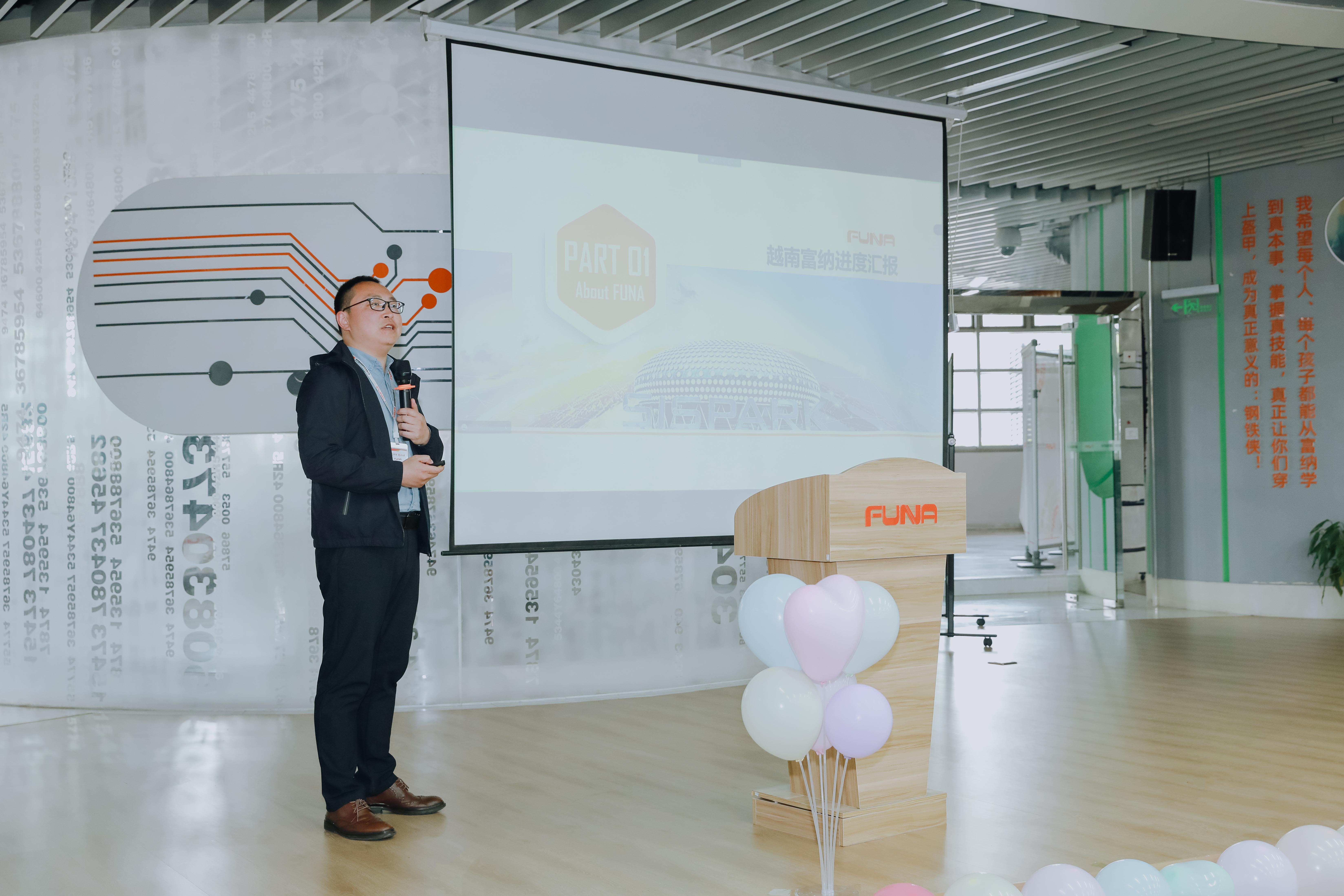 富納科技越南分公司總經(jīng)理盧駿分享了分公司創(chuàng)建歷程、向領(lǐng)導(dǎo)和團(tuán)隊(duì)匯報(bào)了院校合作、基地建設(shè)、客戶開發(fā)等方面進(jìn)展,對(duì)領(lǐng)導(dǎo)和分管部門協(xié)助與支持表達(dá)誠摯的謝意。